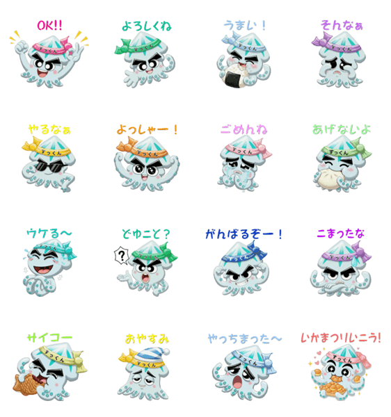 | スタンプ説明 | 愛知県豊川市御津町にある,御津神社いか祭りのマスコットキャラクター「すっくん」のスタンプです。 |