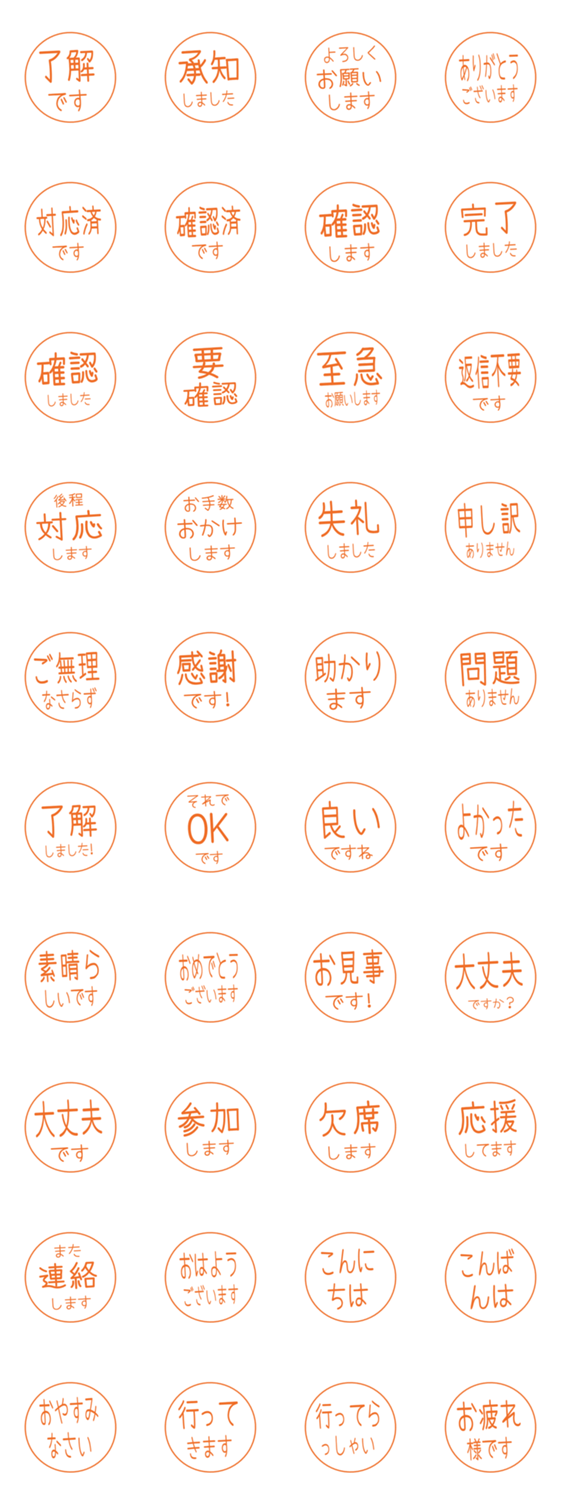 シンプルな敬語のはんこ風スタンプです。毎日の連絡や仕事の返事に使いやすいデザインです。