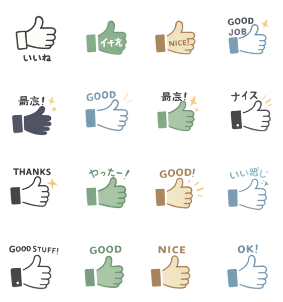 | スタンプ説明 | シンプルでおしゃれな手のグッドボタンスタンプ。いいね、OK、ナイスなど、日常会話で使いやすい肯定表現を集めました。仕事でもプライベートでも自然に使えます。 |