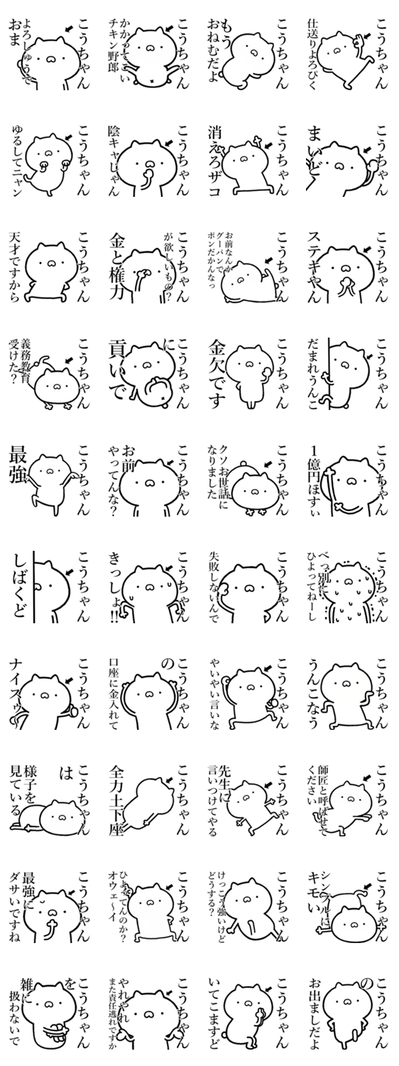 | スタンプ説明 | 【○○が使うしこたま煽るスタンプ】シリーズの他【○○に送る!煽りまくるスタンプ】が第3弾まで発売中です☆ねこ/かわいい/家族/友達/煽り/猫/ネタ/面白い/シュール |