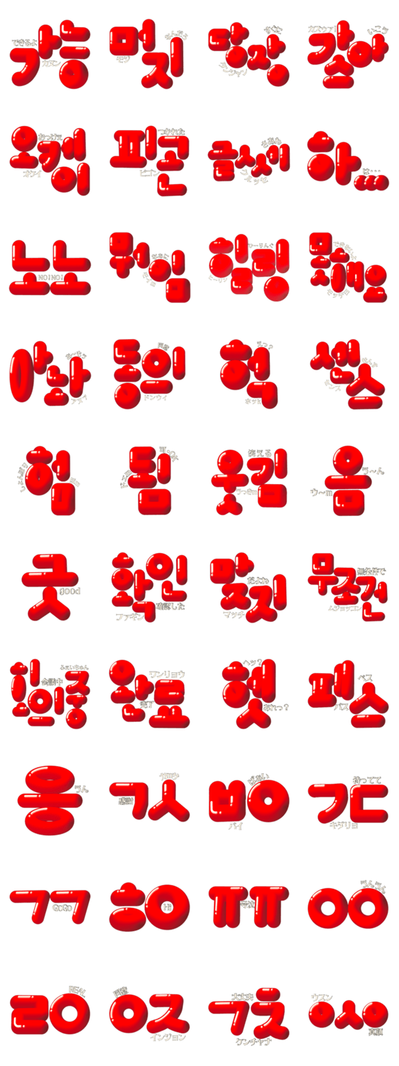 | スタンプ説明 | 韓国グルメ「トッポギ」をイメージした、ぷっくり可愛い文字スタンプです。 日常会話や推し活、ちょっとした気持ちを伝えたい時に使いやすいデザインです。 |