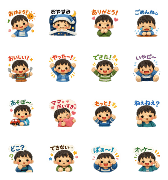 編みぐるみ男の子のスタンプです。たくさん使ってもらえたら嬉しいです^^