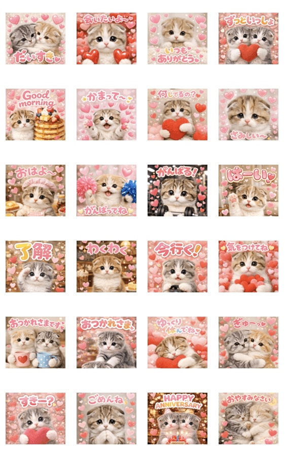 カップル♡彼氏♡彼女で使える♪猫ちゃん達のハートいっぱい気持ち伝えるポップアップスタンプです。