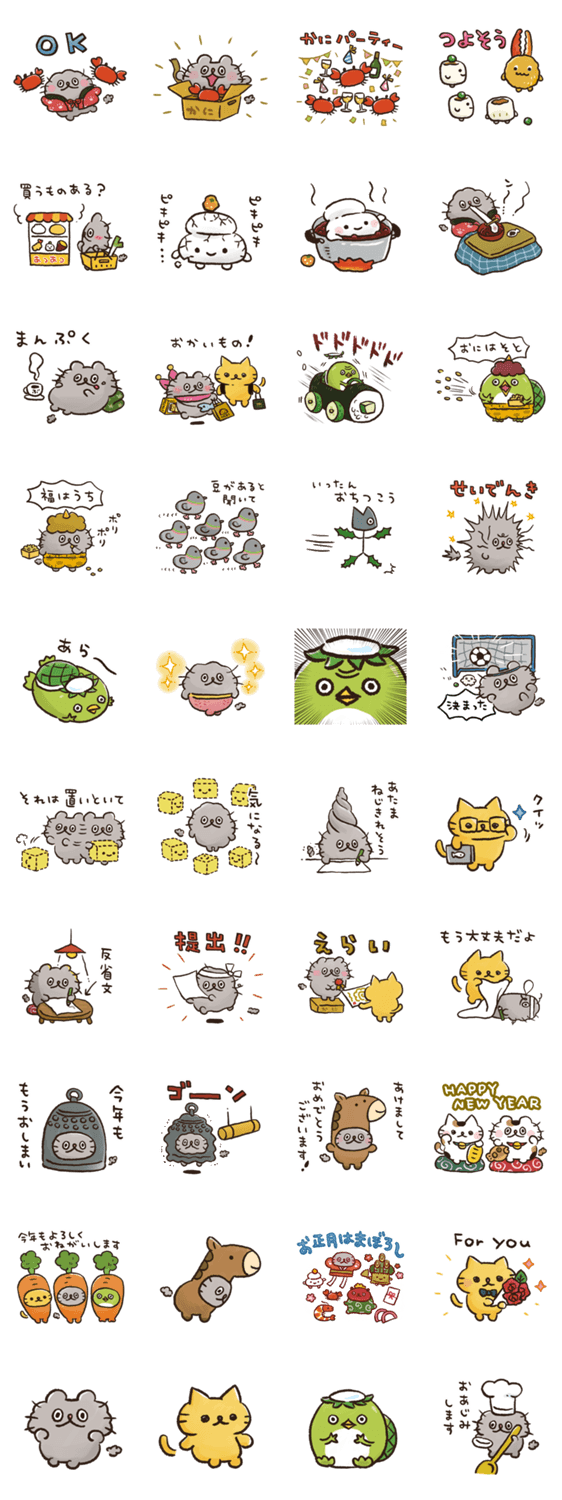 かわいいねこのぶーちゃんのスタンプ第15弾。お正月や節分の絵柄があります。