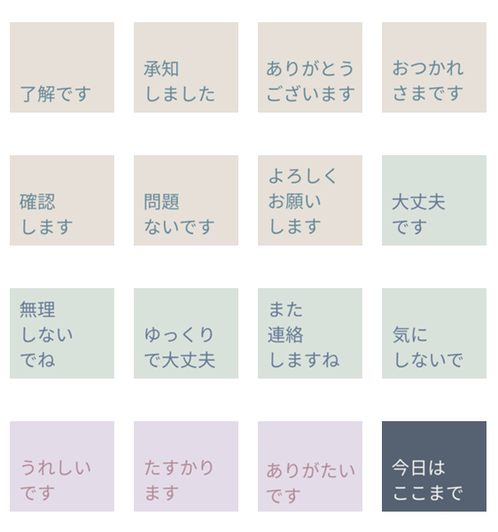 | スタンプ説明 | 毎日のやりとりにぴったり。さりげなく上品なメッセージスタンプが、あなたの会話にやさしく洗練された雰囲気を添えてくれます。 |