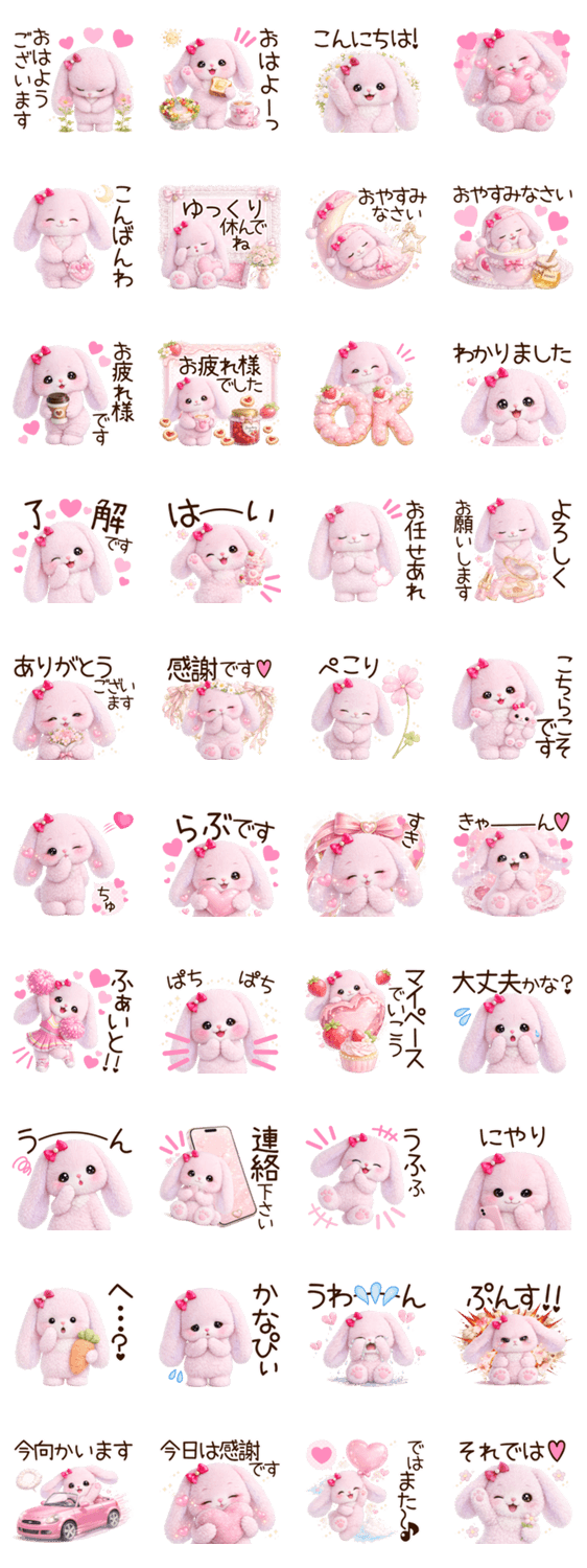 | スタンプ説明 | ピンクがかわいい便利な年中使えるうさぎの愛を伝える誰にでも送れるスタンプ♡恋人・友達・家族に!(大人/カップル/ハート/夫婦/日常/彼氏/彼女/ピンク/夢かわ/毎日/連絡) |