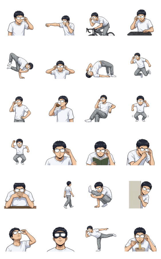 眼鏡の人 ポーズスタンプ(組み合わせ対応)