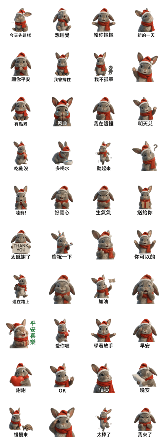 | スタンプ説明 | A gentle and encouraging bunny that cheers you on with simple words and warm gestures, reminding you that today is already good enough. |