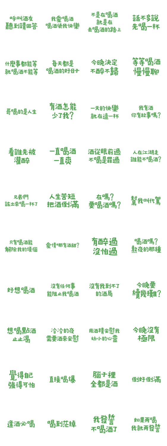 | スタンプ説明 | I've been drunk but never been afraid. Green-10 |