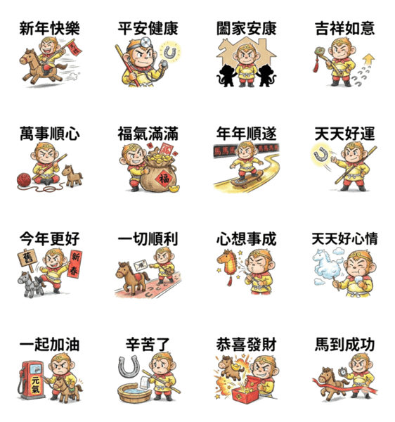 | スタンプ説明 | Reply pack for New Year. Thanks, same to you, same joy, got it, happy new year, talk later. Polite for family. Year of Horse. |