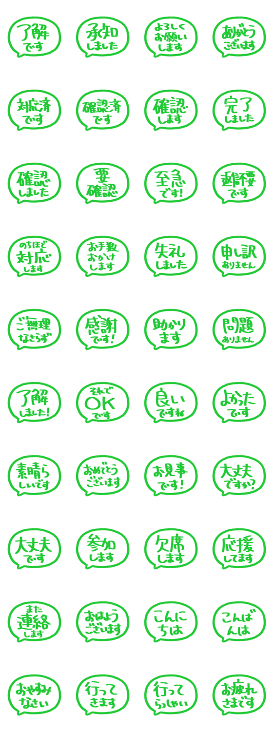 シンプルな敬語の手書き文字スタンプです。毎日の連絡や仕事の返事に使いやすいデザインです。