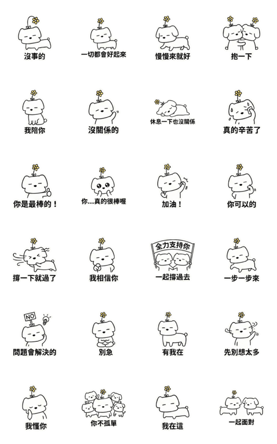 | スタンプ説明 | Quiet and gentle, Little Flower Dog stays by your side. Perfect for sharing comfort, encouragement, and soft cheer-ups during tired or low moments. |