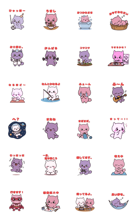| スタンプ説明 | とってもキュートな白、ピンク、紫の子猫たちと一緒に、あなたの気持ちを伝えましょう!可愛いポーズと表情は、毎日のトークを明るく彩ります。 |