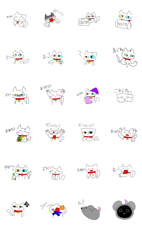 | スタンプ説明 | 私のオリジナルキャラクターの謎の白ネコのスタンプを作りました!使いやすいように頑張ったので使ってください<(_ _)> |