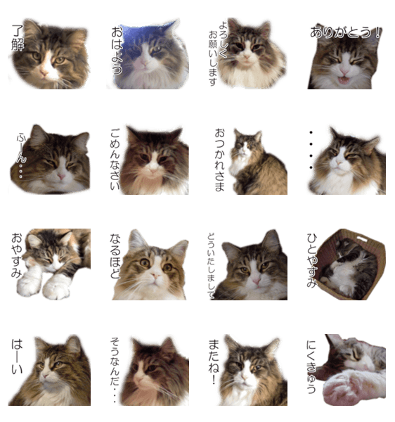 飼い猫の昔の写真をスタンプにしました。日常会話で使えるフレーズをそろえました。