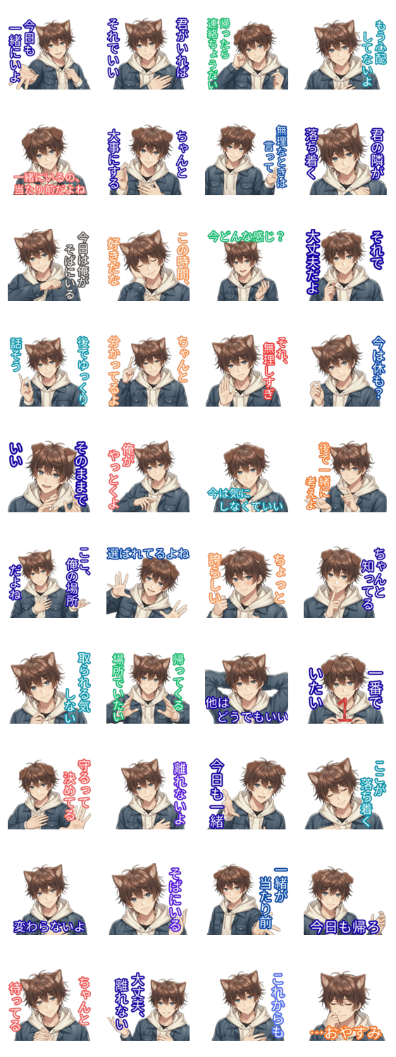 | スタンプ説明 | 優しくて人懐っこい、ちょっと甘えん坊な犬耳な子犬系男子スタンプ。無邪気な笑顔と素直な気持ちで、あいさつから日常会話まで。 |