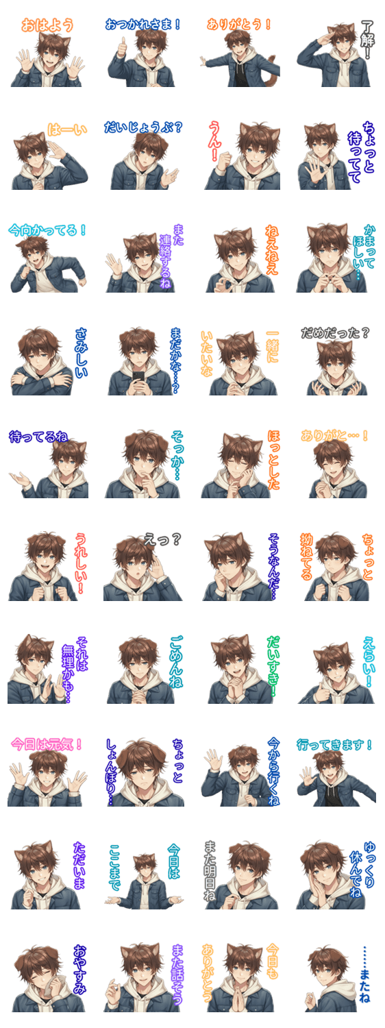 | スタンプ説明 | 優しくて人懐っこい、ちょっと甘えん坊な犬耳な子犬系男子スタンプ。無邪気な笑顔と素直な気持ちで、あいさつから日常会話まで。 |