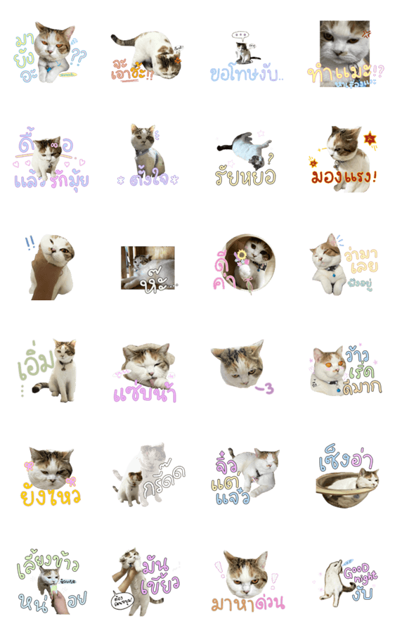 白ネコのあいうえお・・・ってるスタンプ