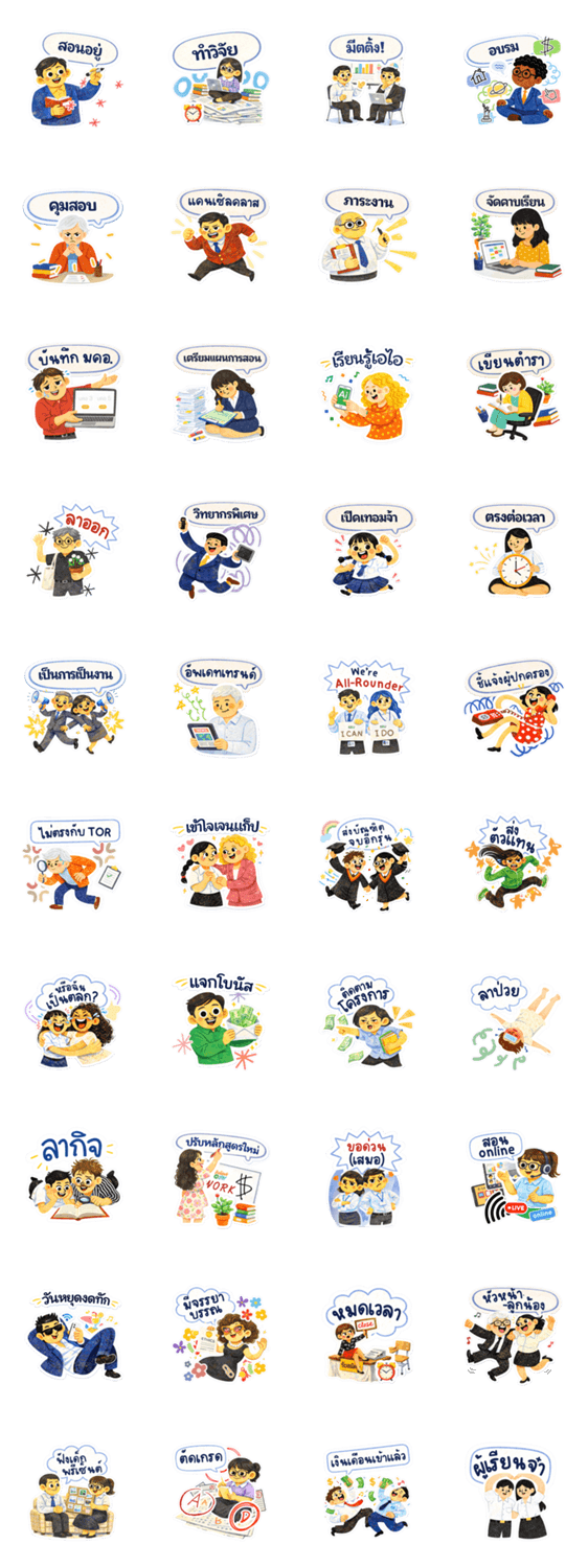 | スタンプ説明 | A cute sticker set showing the true workload of university lecturers. Teaching, admin, meetings, and life all in one set! |