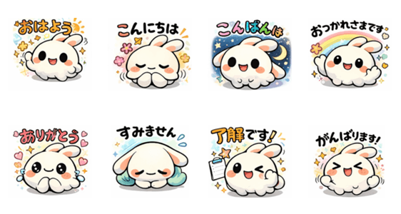 もち成分多めな、まるくてやさしいもちうさ。 あいさつ・感謝・お願い・応援まで、毎日の会話にそっと寄りそうスタンプです。