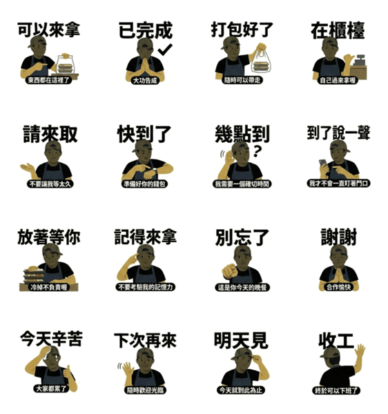 | スタンプ説明 | Pickup notice and closing messages. Finish daily orders cleanly. |