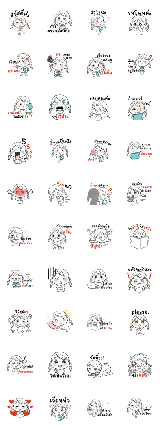 | スタンプ説明 | A sweet and hardworking girl who loves to chat with friends. Cute, warm, and perfect for everyday conversations. |