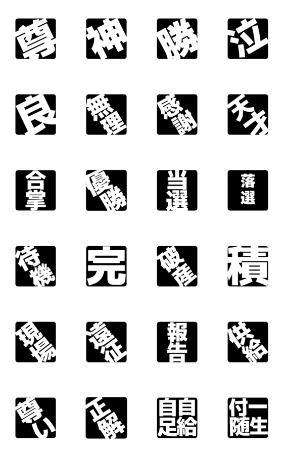 | スタンプ説明 | 推しへの溢れる感情を叩きつける、黒×白の特大文字スタンプです。尊い、無理、泣、神などの語彙力を失った時に。ライブ、推し活、日常の叫びに。見やすい角丸デザイン。 |