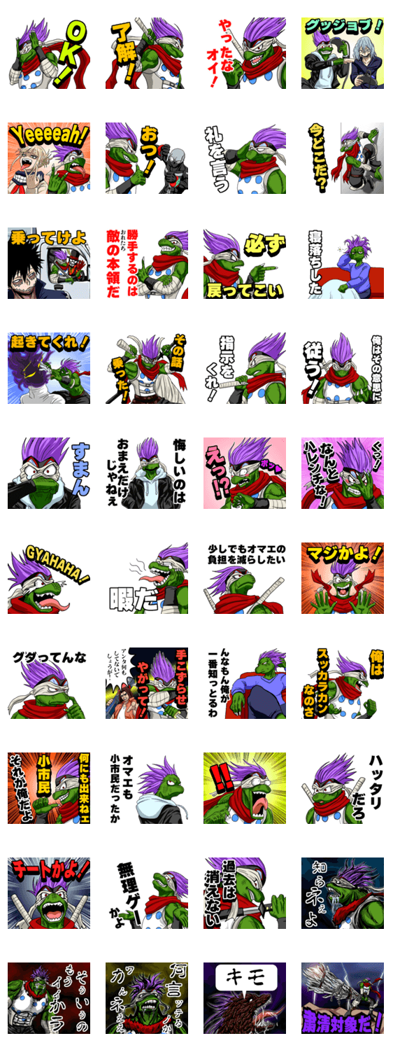 | スタンプ説明 | 「僕のヒーローアカデミア」より ヴィラン名《スピナー》こと伊口秀一のスタンプを作りました。彼は小市民です ※LINE Creators Collaboration 僕のヒーローアカデミア参加スタンプです。 |