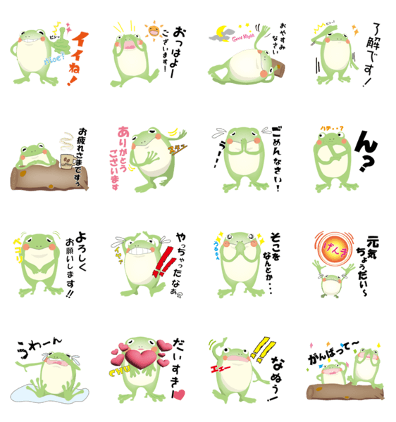 | スタンプ説明 | 岩手県八幡平市は国定天然記念物、森の住人モリアオガエルのビッキーと暮らす街。非公認マスコットキャラ、ビッキーは今日も明日もいっつもみんなと一緒です。 |