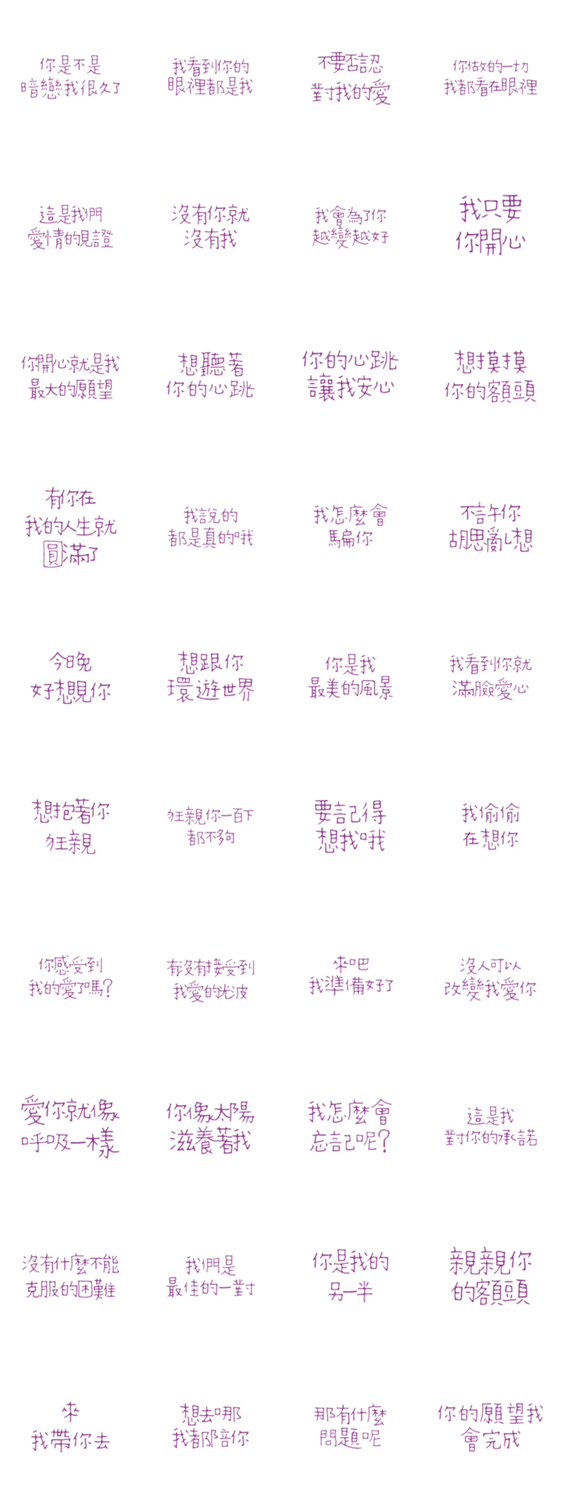 | スタンプ説明 | Your heartbeat puts my mind at ease. Purple 20 |