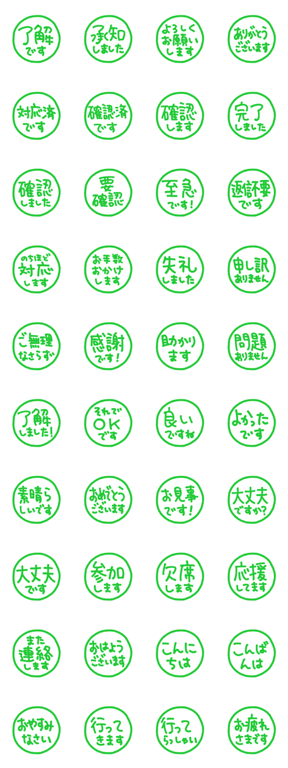シンプルな敬語の手書き文字スタンプです。毎日の連絡や仕事の返事に使いやすいデザインです。
