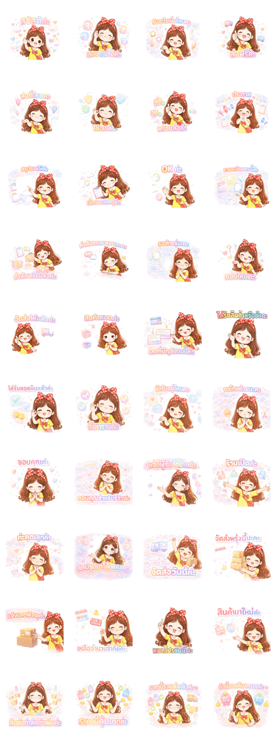 | スタンプ説明 | Cute pastel admin seller stickers for online shops and chat selling. Perfect for fast replies, order confirmation, best seller promotion, packing, daily |