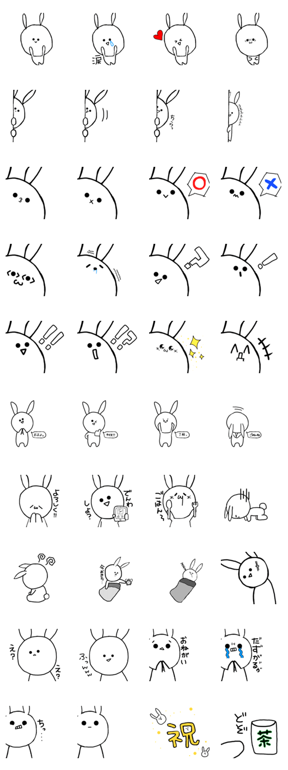 | スタンプ説明 | なんともいえない表情のうさぎが貴方の気持ちを代弁します! |