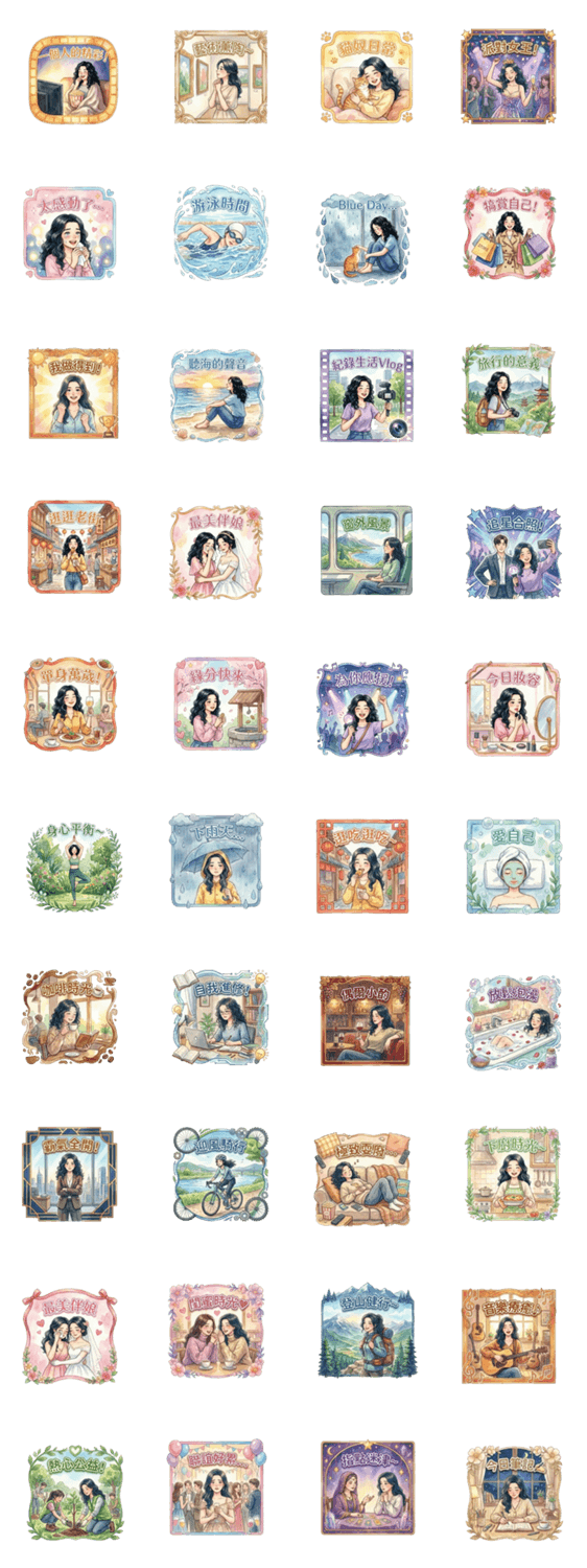 | スタンプ説明 | 自立した大人女子へ。仕事、ヨガ、猫、晩酌など、シングルライフを優雅に楽しむ!ロマンチックな水彩画風スタンプが、あなたの日常の感情を彩ります。 |