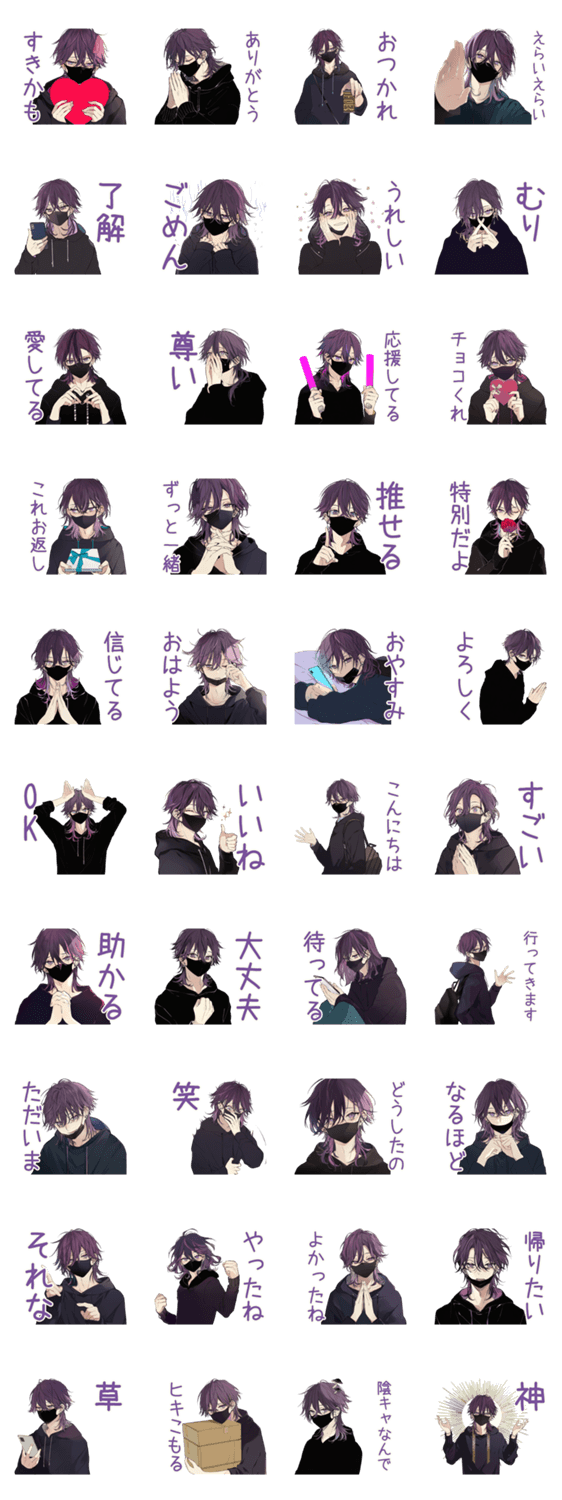 | スタンプ説明 | 想いを伝える内気な男の子。毎日/挨拶/日常/恋人/推し/愛/彼氏/地雷系/メンヘラ/学生/かわいい/バレンタイン/ハート/癒し/告白 |