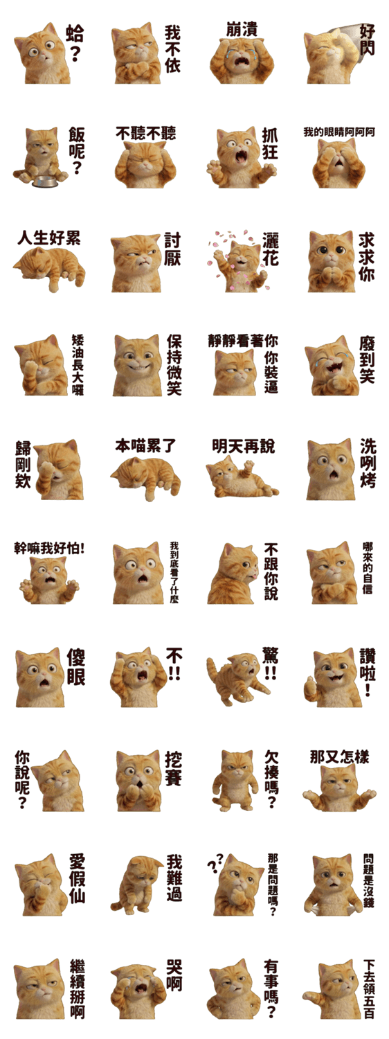 | スタンプ説明 | Meet the sassiest ginger cat with a judgmental look! This 3D sticker pack features an arrogant attitude perfect for adding hilarious flair to your chats. |