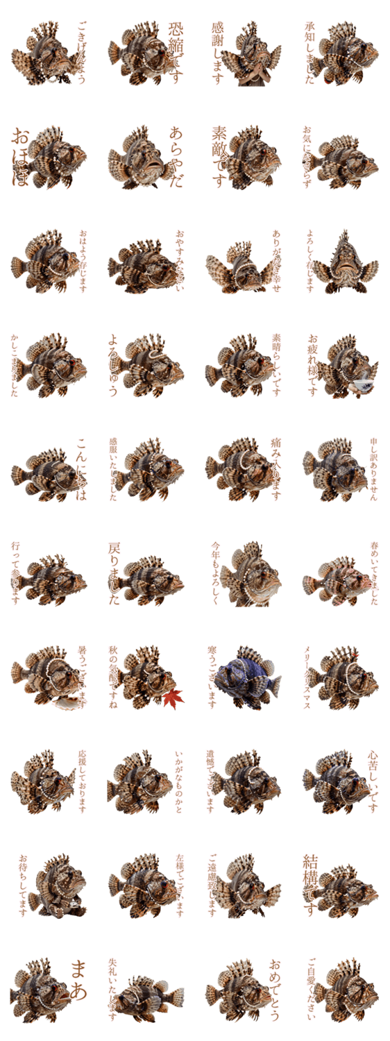 | スタンプ説明 | 猛毒フェイスで貴族の振る舞い。意外と上品オニオコゼ/シュール/お嬢様/ブサカワ/深海魚/煽り/面白い/ネタ/個性的/敬語 |