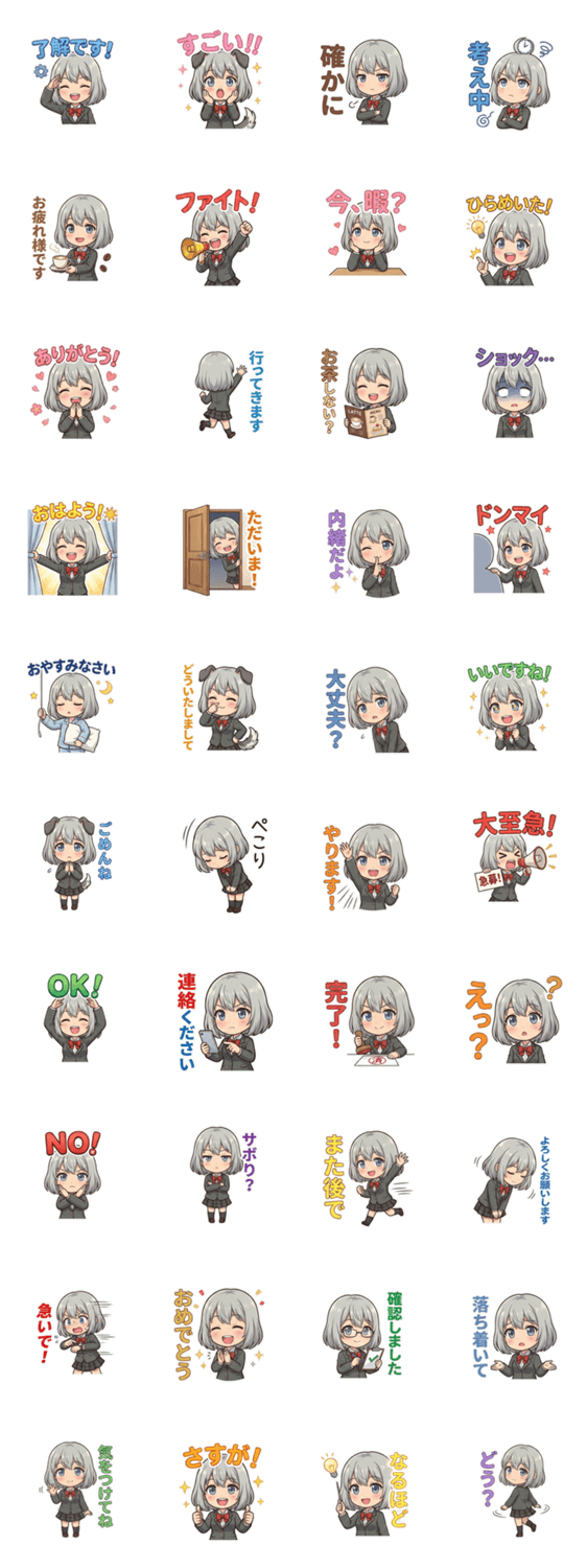 | スタンプ説明 | ラティア(Latia)は頼れるクラスの委員長!でも放課後は誰よりはじける天才少女。たまに本性(犬)が出ちゃいます…今回は日常で使えるオーソドックスなスタンプセットです。 |