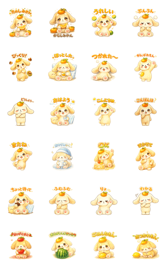 | スタンプ説明 | ゆるくて、ちょっと元気な「たのし蜜柑」のスタンプです。 もじったあいさつや返事、気持ちのひとことなど、 毎日のトークで使いやすい言葉を集めました。 |