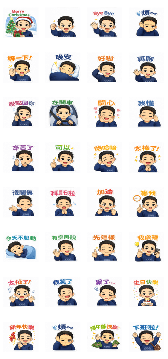 | スタンプ説明 | A warm daily sticker set for everyday chats. Cute boy expressions for greetings, encouragement, and festive moments. |