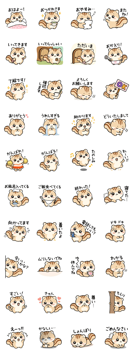 | スタンプ説明 | うるうるおめめのリスが毎日にそっと寄りそう♪ 挨拶やお礼、気づかいなど、日常で使いやすい言葉がいっぱい。やさしく癒される、毎日使えるスタンプです。 |