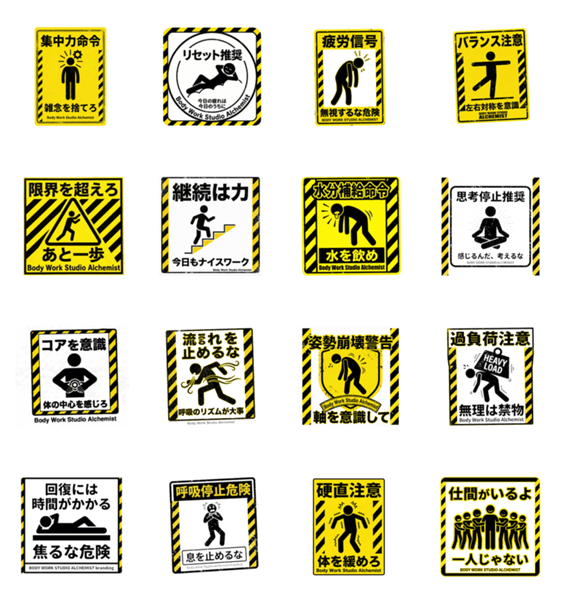 | スタンプ説明 | A comprehensive set of 16 training support stamps designed for Body Work Studio Alchemist members. |
