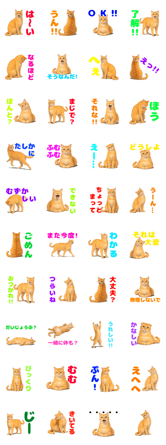 | スタンプ説明 | 茶トラ猫りんちゃんのスタンプ。感情編です。笑ったりしょんぼりしたり、やんちゃなりんちゃんの可愛い仕草にほっこりしててください。 |