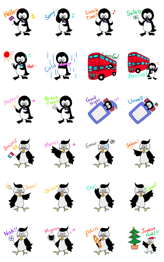 ロンドンのペンギンペンドナーとパリの雲雀ヒバリジャンのスタンプです。
