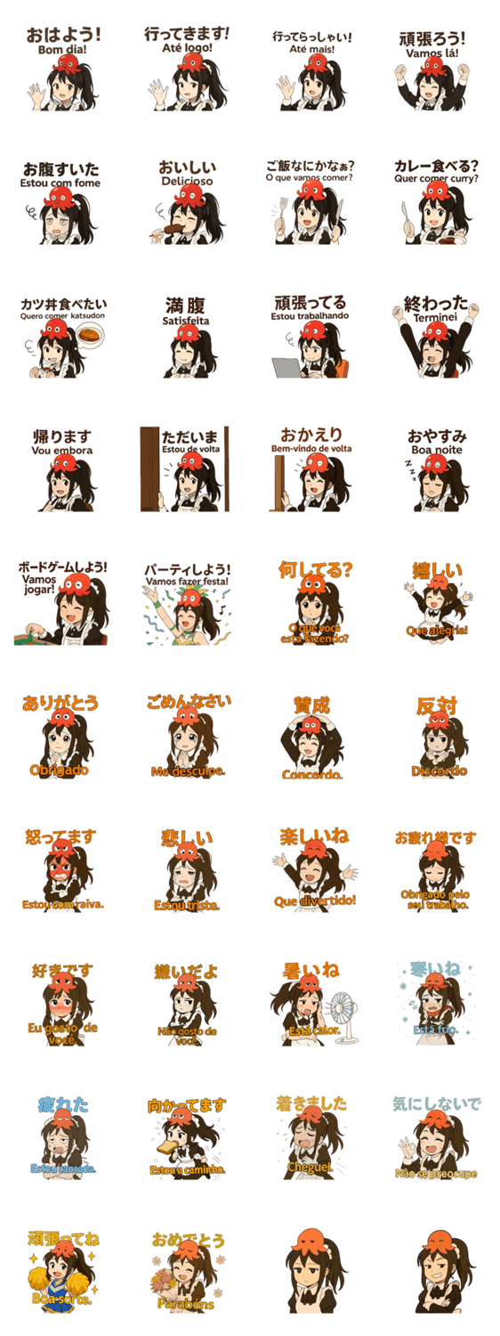 | スタンプ説明 | ポルトガル語を話す友達とのコミュニケーション用に作りました。使ってもらえると嬉しいです。 |