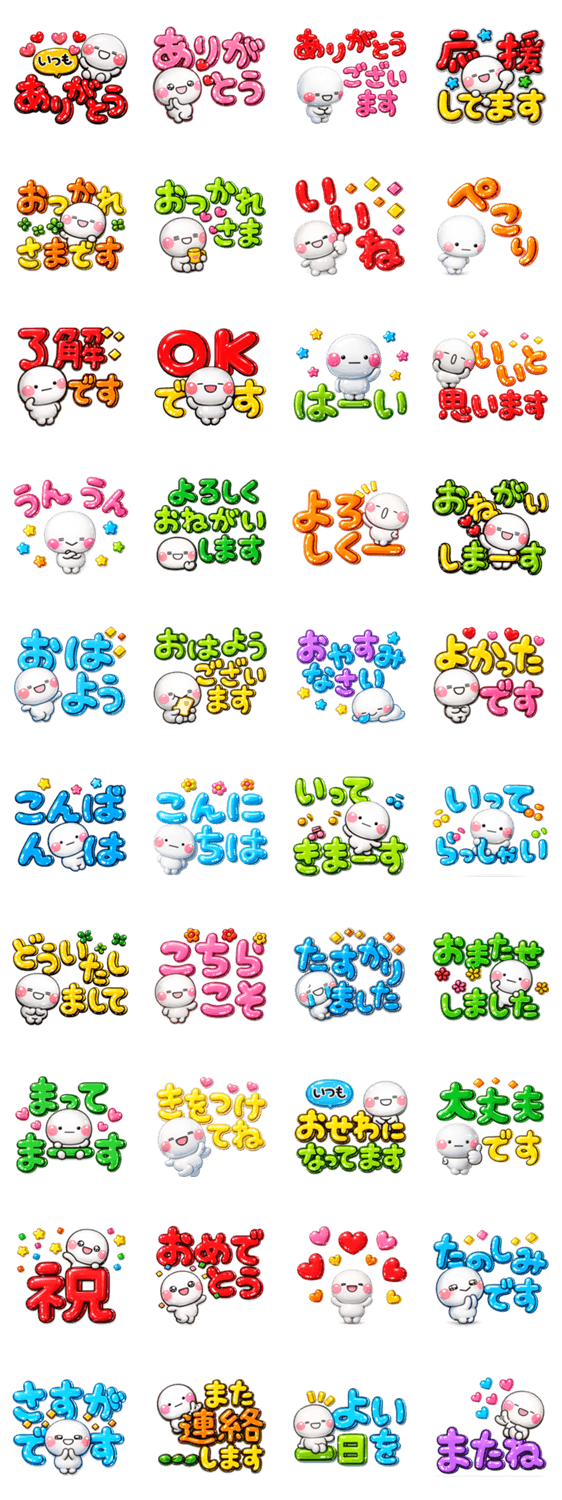 | スタンプ説明 | 大人気ぷっくりツヤがあるシール風で作成した通常とは違う雰囲気のスタンプです。ずっと使える内容を揃えましたのでスタンプ初心者の方にもオススメです。 |