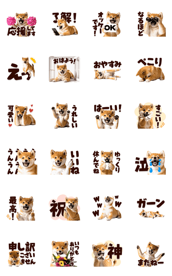 | スタンプ説明 | 柴犬の実写風アニメーションスタンプ第二弾です。太字&デカ文字で見やすい!しばけん・豆柴・日本犬・日常・挨拶・敬語・便利・気づかい |