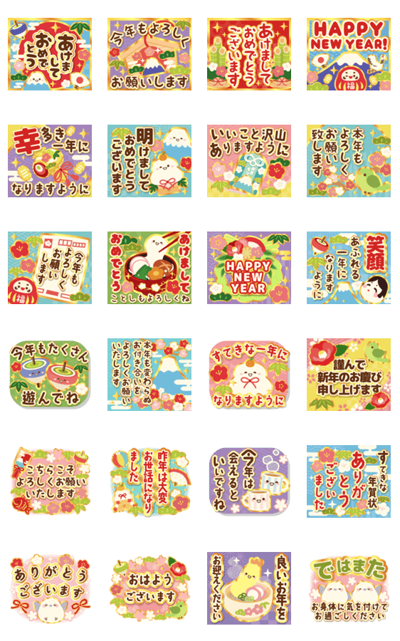 | スタンプ説明 | とびだす!ずっと使えるかわいいお正月のスタンプ♪あけましておめでとう,お正月,年末年始,新年,あけおめ,年越し,大晦日,謹賀新年,年賀状,様々な場面でのご挨拶に使ってね♬ |