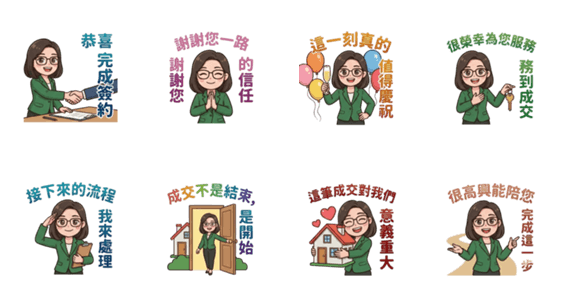 | スタンプ説明 | Stickers for contract signing and deal closing moments. Celebrate milestones and support professional real estate communication. |