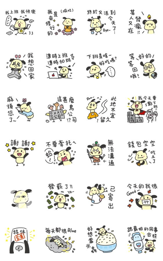 | スタンプ説明 | Feeling miserable at work, but super happy when payday comes~~ Fearing the endless cycle of having no money. |